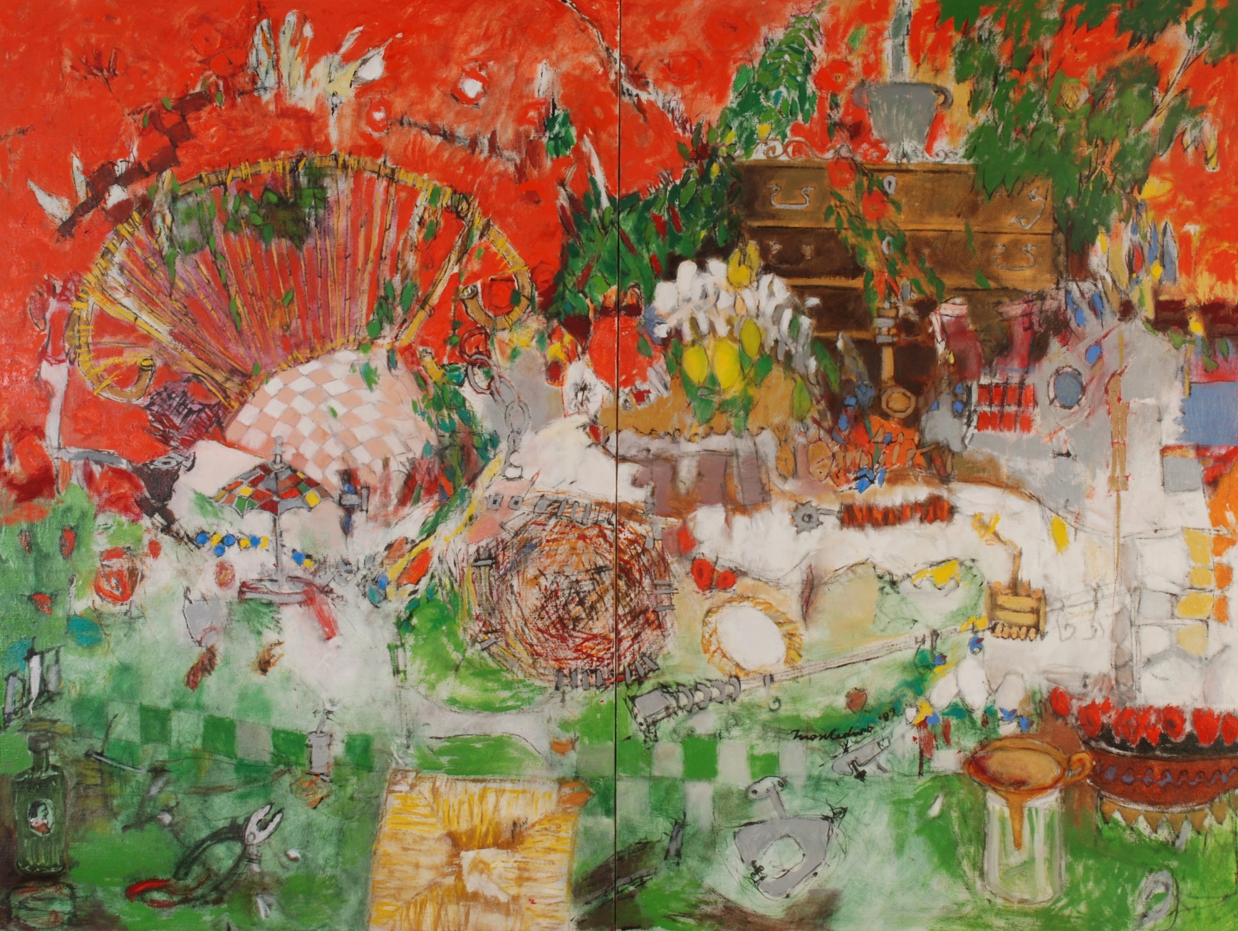 io credo che le opere vadano viste dal vivo, un monitor o una qualsiasi immagine riproduttiva penalizza molto l'opera stessa anche se molto fedele all'originale. Nonostante questo, i tuoi lavori hanno un magnetismo che si trasmette anche al di là dell'opera stessa e nonostante io stia guardando questo lavoro da un monitor, ne sono totalmente attratta ed affascinata. Il tuo quadro racconta di più storie che si intrecciano creando una storia unica, più vissuti che parlano di sè volendo affermare la propria memoria...