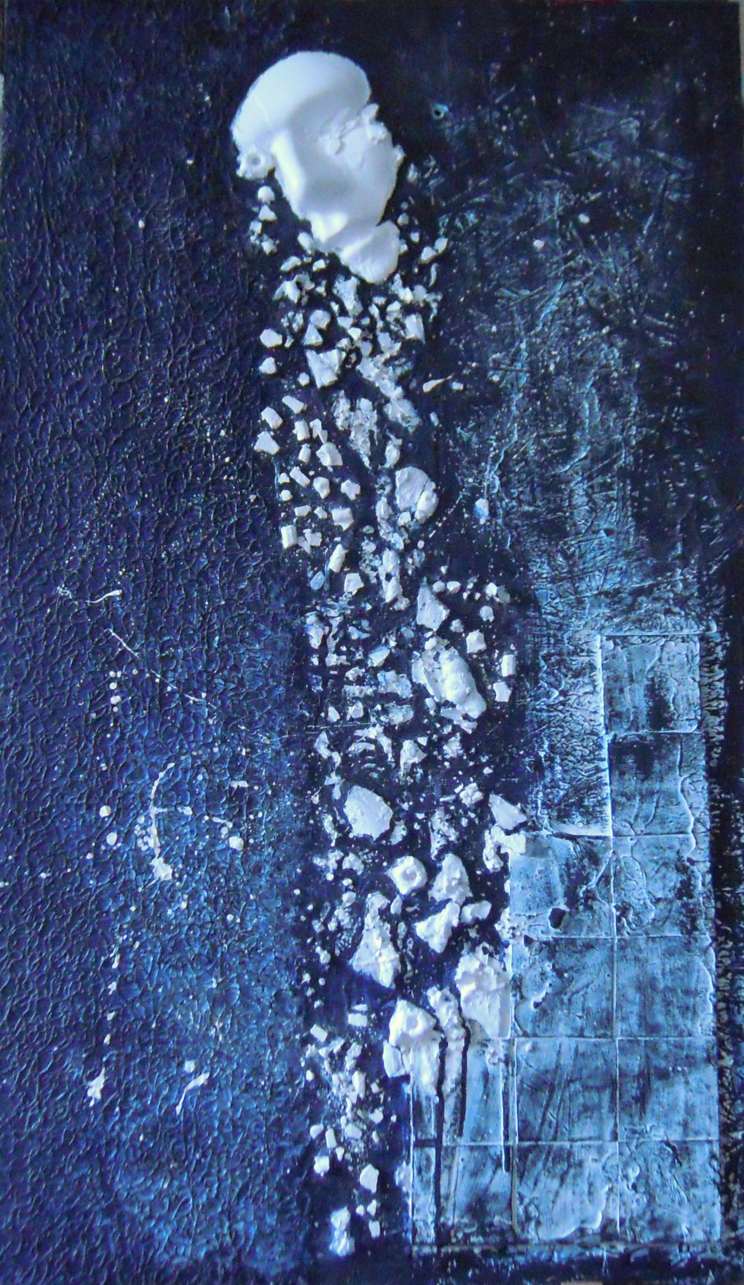 viso in ceramica con applicazioni di materiale misto tipo vetro e rete