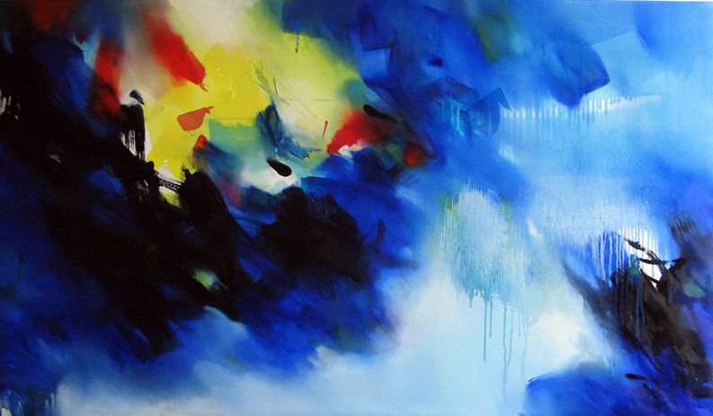 Intendo integrare questo spirito con lo spirito espressionista in modo di esprimere i sentimenti e mood soggetivi e la passione interiore. E ho unito i colori luminosi di pittura occidentale con la calligrafia, poesia e pittura tradizionale a inchiostro della Cina.