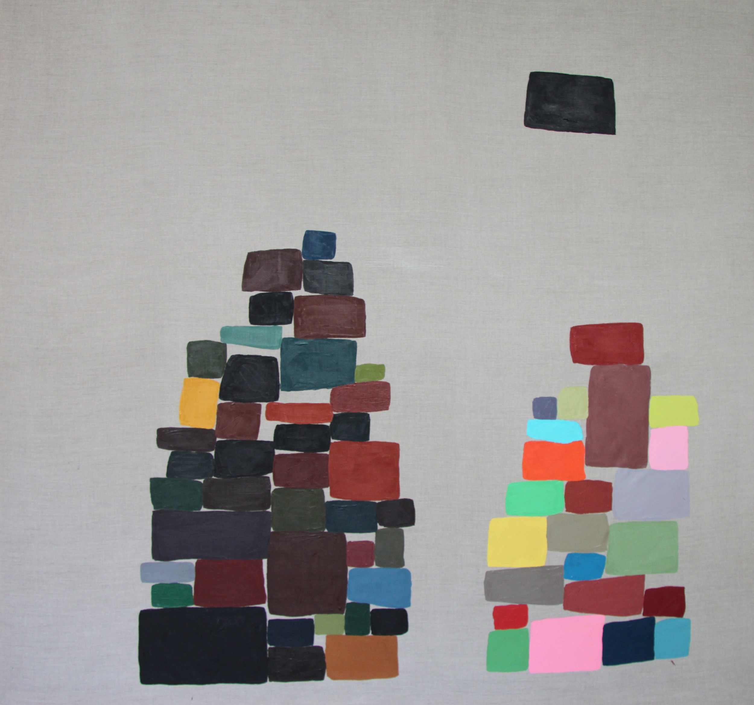 whispering to each and in others act in a controlled chaos within a dizzying fight for dominance. Canvas pieces are paired with framed