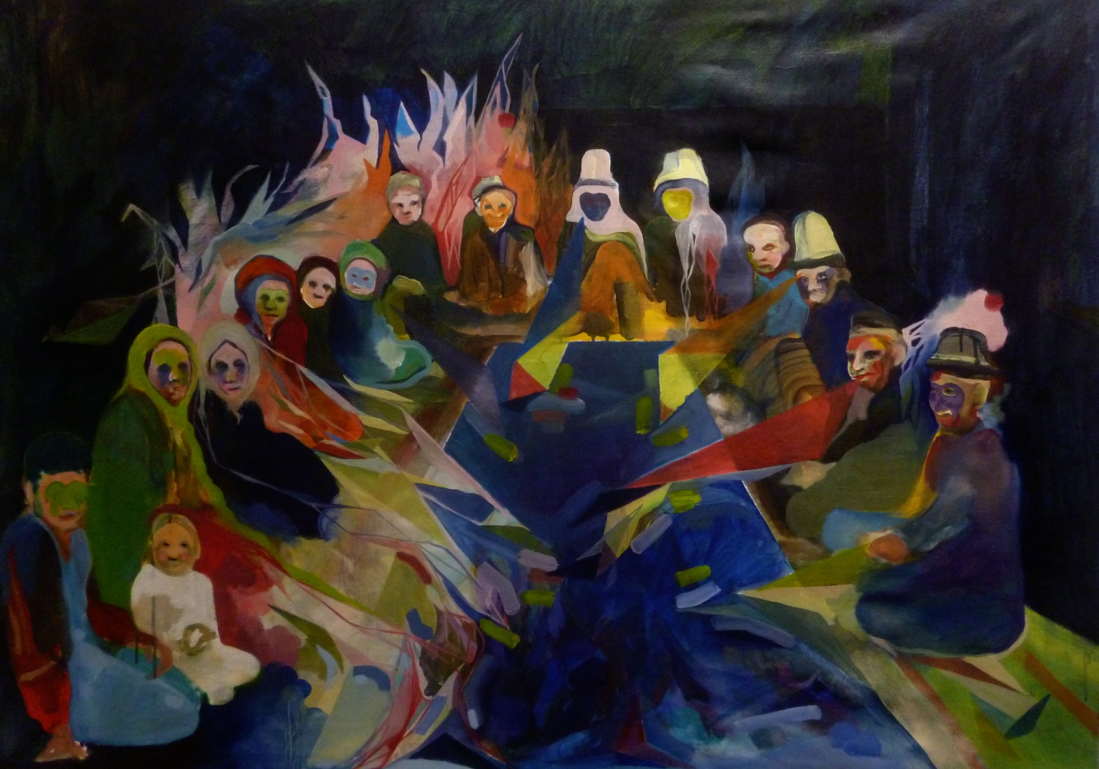 Supper is part of a series looking at the ritual of the table scene, a universal custom across cultures, the gathering of people to share in the act of eating. there is a photo of supper in everyones collection, the celebration, the bond of ourselves to the earthly plain, the earth and sun who nourish us. Supper uses a painterly abstraction to explore the notion of slippage, in memory, in meaning, in context.