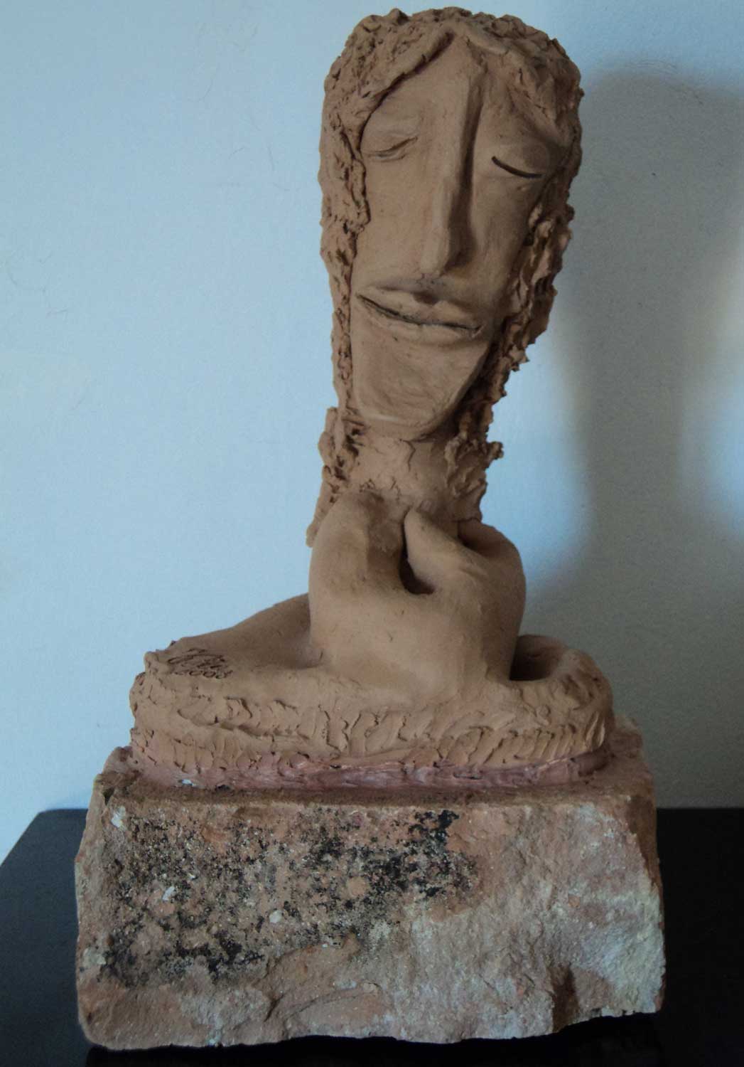 Tutte le tue opere Cinzia sono bellissime sia i borghi dei paesi, e le donne e le figure senza volto, ma è come se il volto lo avessero, perché il contesto è meravigliosamente significativo..mi soffermo su questa perché ciò che mi colpisce è l’espressione che gli hai regalato..un uomo buono e che magari ha sofferto come tutti nella vita..ma soprattutto io vedo nel viso di questa tua splendida scultura la saggezza di chi von hoi ostacoli che ci ricerca la vita ci va a nozze..
