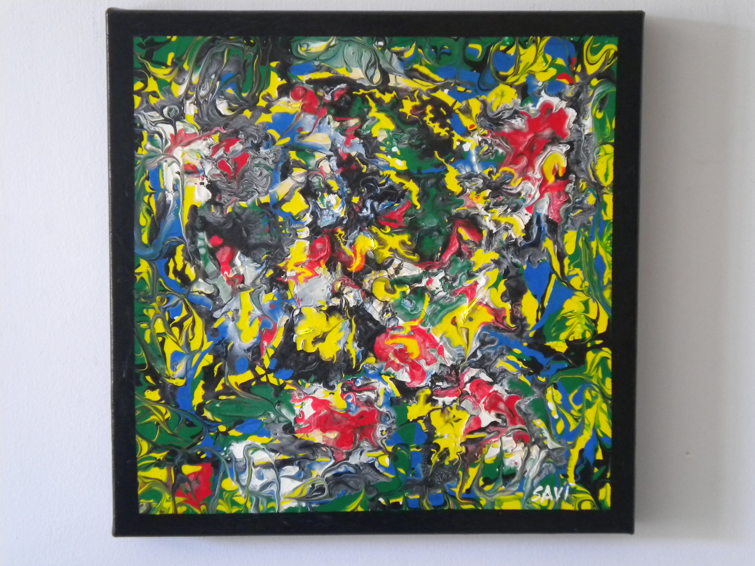Bellissimo,meraviglioso il giallo che spicca tra tutti gli altri colori,sarà una mia impressione ma sembra che il tuo genere si stia modificando,in forme più definite rispetto a gocce e spruzzi.Mi piacevano inizialmente e questi mi piacciono ancora di più.