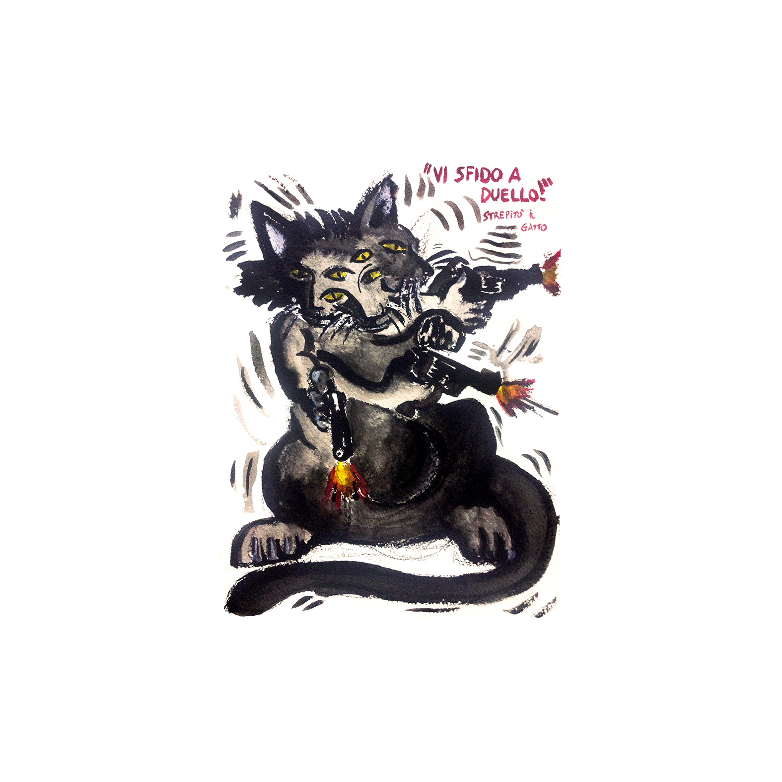 Vi sfido a duello, strepitò il gatto! Pittura, Animale, Morte, Acrilico, 20x30cm Carta Acrilico Bianco/Nero pistola duello gatto nero sfida sparare sparatoia Behemot reagisce sparando alla minaccia degli uomini dei servizi segreti russi Inserita 12 anni fa 1 Mi piace Non piace più 0 Commenti 234 Visite Condividi Facebook Twitter Google + Piace a 1 Tanya Bartolini Premium Artista - Milano Commenti 0 Inserisci commento E' necessario effettuare il login o iscriversi per inserire il commento Login