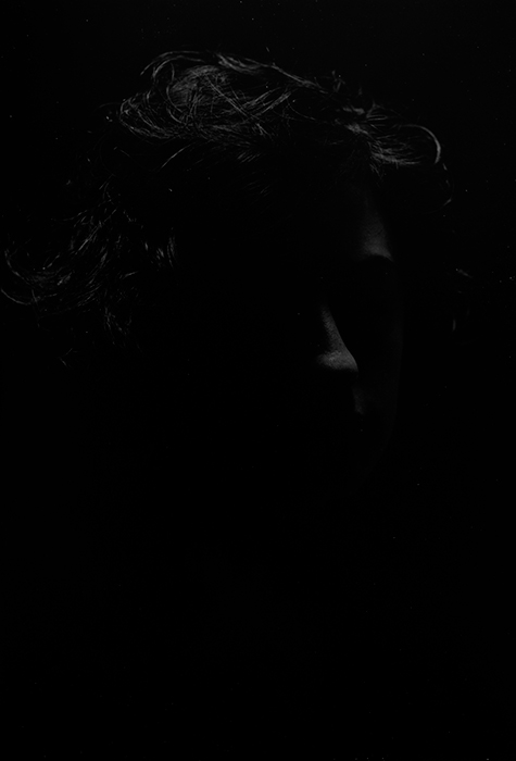 Niente è nitido, difficilmente si riesce a distinguere chiaramente cosa la luce sceglie di svelare. Quasi come un buco nero, il buio invade il nostro sguardo, ma il tentativo di mettere a fuoco ciò che è sulla superficie fotografica non resta vano. È là, la trama riesce ad emergere e una traccia ci dona le coordinate per osservare questi insoliti ritratti. Il nostro sguardo non viene mai attraversato da quello del soggetto, troppo in ombra per poter emergere. Anche quando i volti sono frontali, l’oscurità divora ogni contatto. A regnare sembra quasi una sorta di incomunicabilità con chi è spettatore.