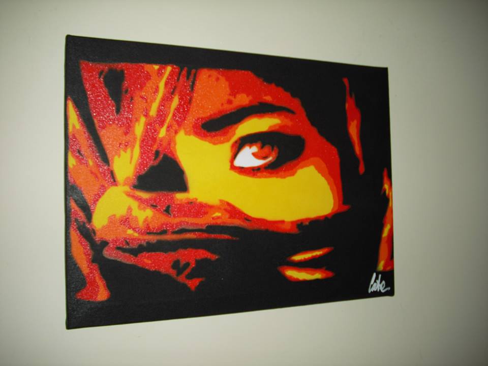 Ritratto di donna araba, passando per le strade della mia città vidi questa donna, seduta su un marciapiede con il volto ricoperto e mi incuriosì, così mi ci avvicinai, teneva un bambino nel grembo molto magro così pensai di offrirle qualcosa in denaro.. lei si sopri il volto e mi sorrise, le chiesi se di fotografarla e non esitò un secondo.. mi rimase impressa e volli impressionarla in una mia tela sotto forma di opera, per mai dimenticarla.