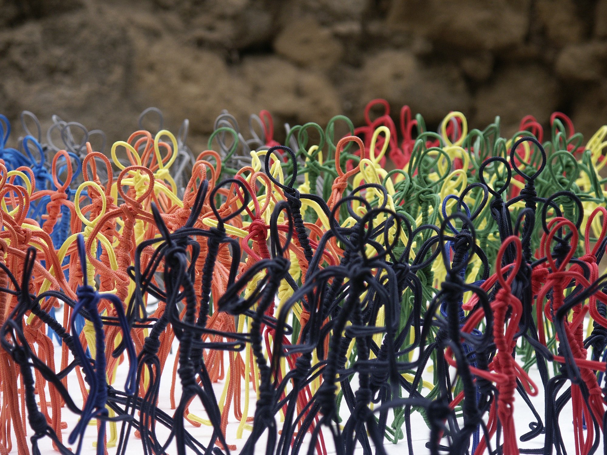 L’istallazione invita alla riflessione; attraverso l’immagine disegnata nello spazio , di piccole figure colorate alte 15/20 cm che formano un tappeto colorato sul terreno.