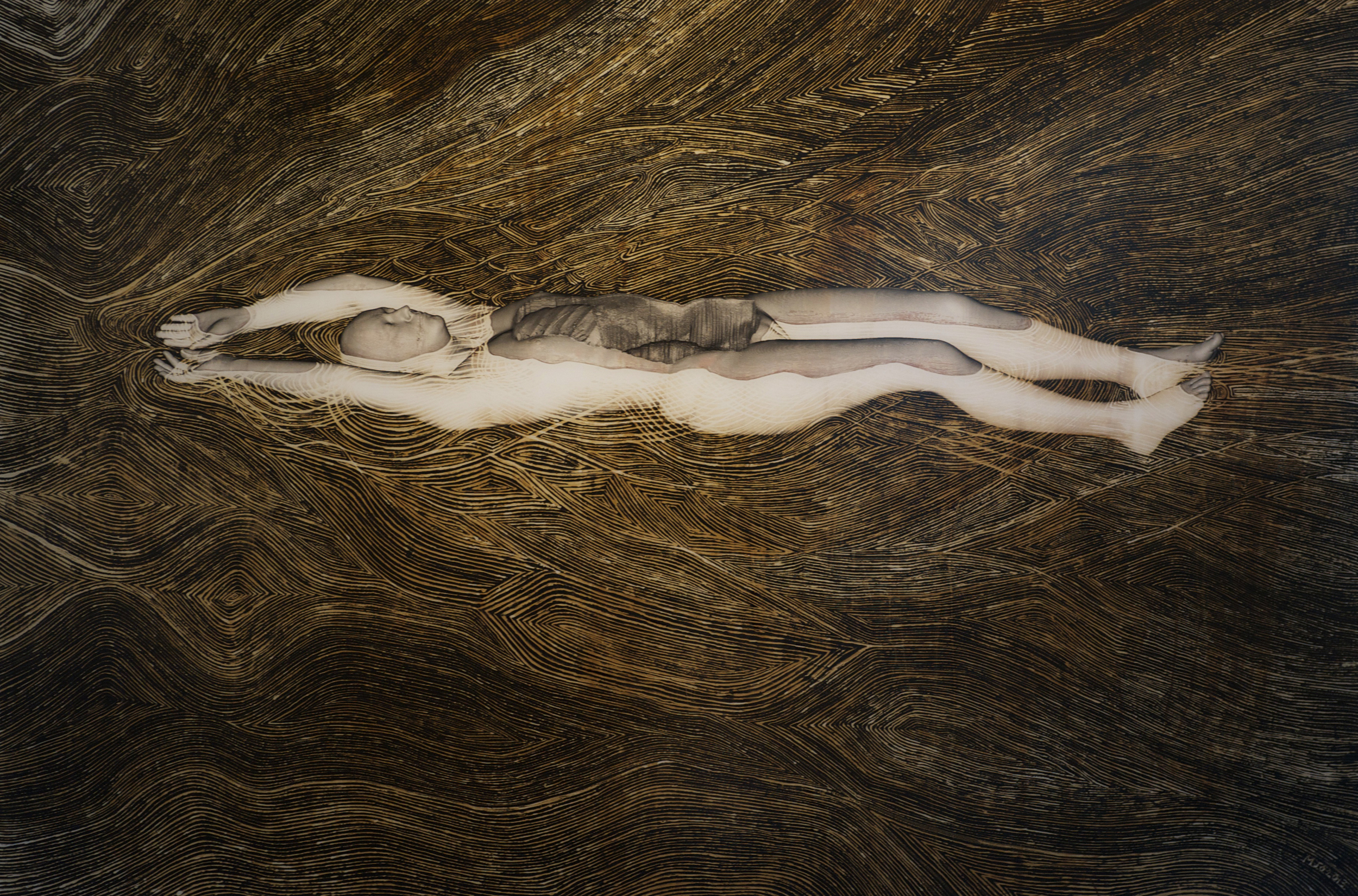 As an artist I work almost exclusively with an with an anonymised CT dataset called Melanix. Freed from having a personal relationship with the subject I work with scanned body as I would an avatar, constantly reforming and re-materialising her to suit changing ideas and impressions. Although I primarily work as a sculptor, this last series CONFUSAO is combination of digital, photography and painting; I worked with radiology software to export renderings of the scanned body that were then made into internegs to allow me to make large traditional black and white photographs that I could then paint into with photographic bleaches and inks.