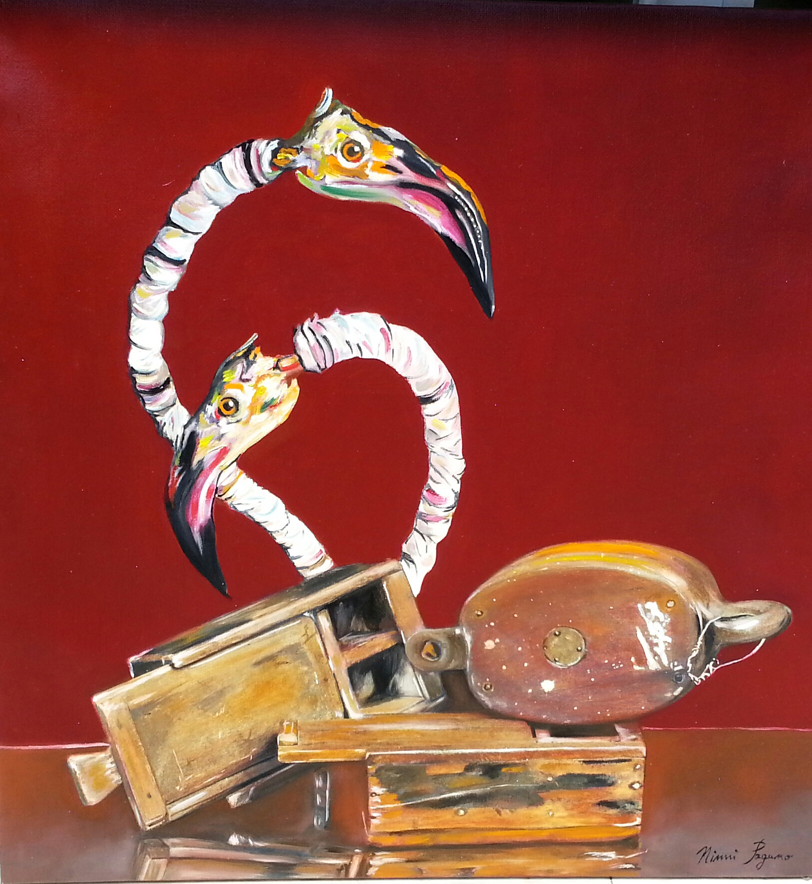 Quest'opera nasce dalla constatazione che l'uomo soffre perché ha una concezione sbagliata dell'esistenza. Ognuno di noi deve imparare ad espandere la propria coscienza, aumentare la propria presenza, essere in grado di percepire tutto ciò che ci circonda. Raggiungere la consapevolezza è liberazione della meccanicità. Risvegliarsi per comprendere che l'armonia con gli altri è uno stato dell'essere, preferibile alla diffidenza, superiorità o giudizio e proprio dalla presa di coscienza dei propri limiti, nel risveglio inizierà a germogliare quel grande dono che è il non giudizio. Con l'essere vitali si riesce a capire che l'uomo possiede un corpo, delle emozioni, una mente ed un progetto di vita. Possiamo quindi affermare che siamo formati da una personalità e da un'anima. La personalità è il nostro "ottimo" ed indispensabile strumento di crescita, quello che ci permette di aumentare la nostra consapevolezza.L'anima necessita di corpi più densi tramite i quali sperimentare. Bisogna capire come questi corpi funzionino, le leggi che li governano ed interagire al meglio con loro,Un essere centrato, un animale iniziatico, , così come il fenicottero da sempre considerato l'uccello iniziatore alla luce, quell'entità che comprende il proprio progetto inimico o piano di volo ed i suoi corpi sono dei mezzi attraverso i quali realizzarlo portando con la precisione alchemica dalle tenebre alla luce.