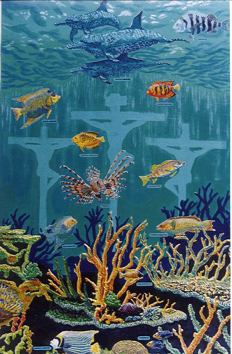 This painting was done for my sister. she loves Dolphins and she asked me when will i paint a picture for her. When I consider doing this painting I thought about how could I design a illustration that would use the names of fish to teach her the attributes Jesus had being the Son of God and Savior of the world.