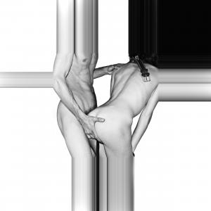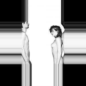 Ho cercato di rappresentare un uomo e una donna nudi davanti a sè stessi in un anti spazio/tempo, quello dell'Es, definito come connubio fra Eros e Thanatos, quindi fra pulsioni erotiche ed autodistruttive, per questo c'è qualche riferimento al sadomasochismo.