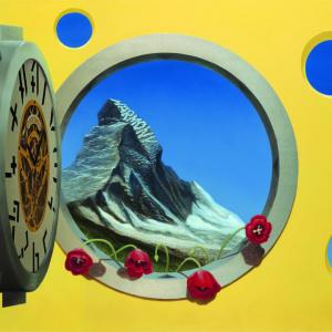 An abstraction of Unity is represented by an enlarged mask displaying the interconnection between man, woman, animals, and plants. Central to the mask is a flower symbolizing universal love. This flower is embedded between the large overseeing compound eyes that represent the most numerous species on this planet—insects. The plants, insects and all animals are mutually dependent on one another for survival.