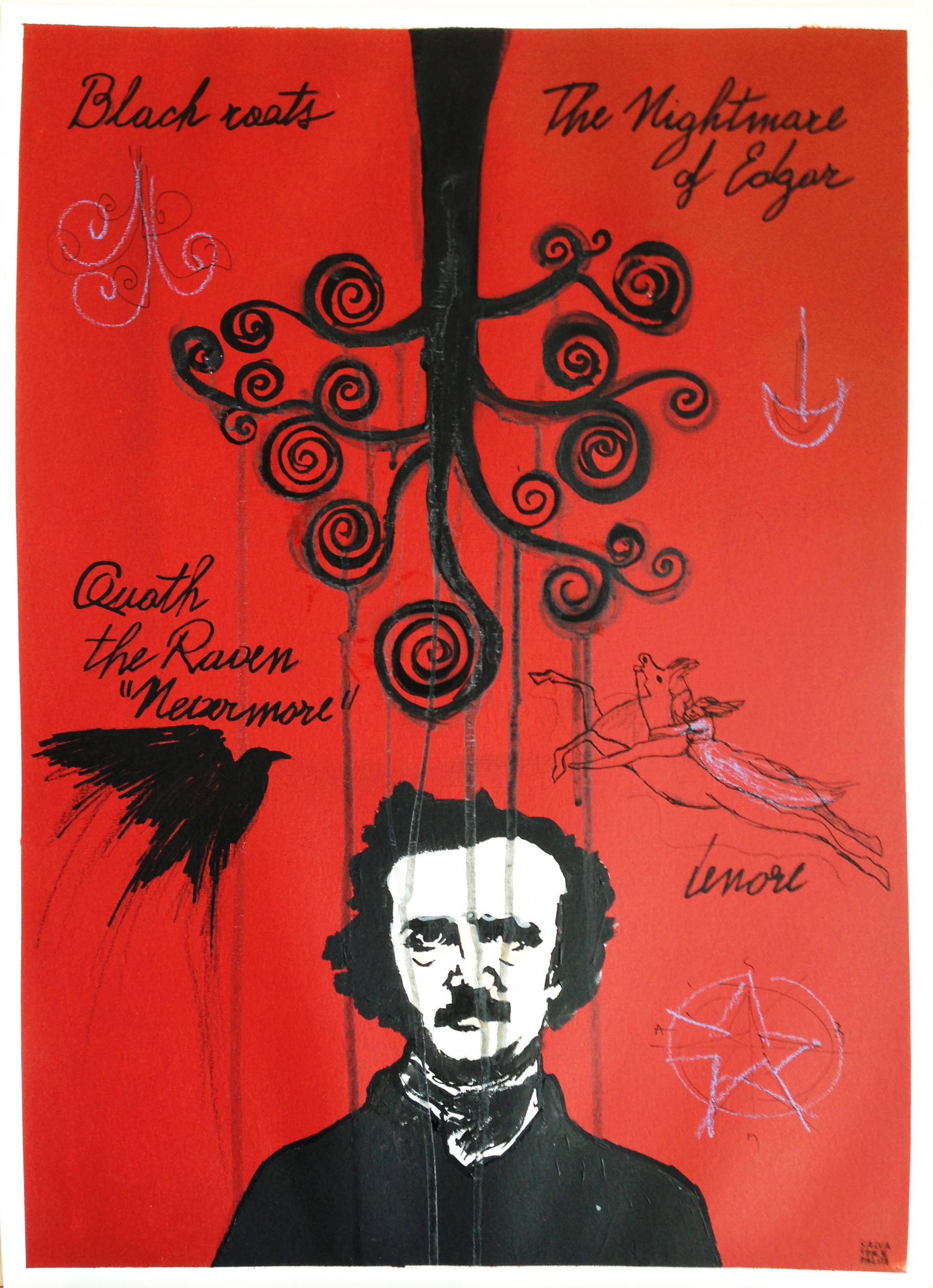 The Nightmare of Edgar Pittura, Memoria, Illustrazione, Acrilico, 50x70x2cm Cartone / Cartoncino Acrilico Rosso poe L' opera è un'allegoria di un'immaginario incubo di Edgar Allan Poe Inserita 11 anni fa 0 Mi piace Non piace più 0 Commenti 177 Visite Condividi Facebook Twitter Google + Non ci sono mi piace Commenti 0 Inserisci commento E' necessario effettuare il login o iscriversi per inserire il commento Login