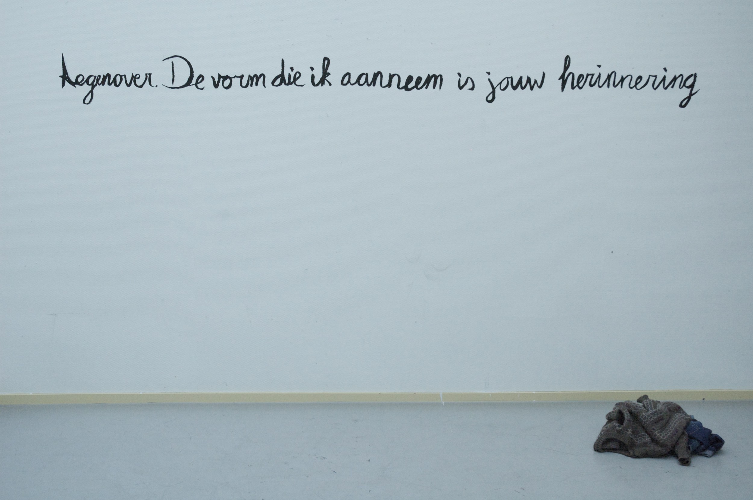 tegenover. De vorm die ik aanneem is jouw herinnering Installazione, Filosofia, Simbolo / Lettera, Natura morta, Materiali vari, 300x200x100cm Materiali vari body imagination empty interpretation clothes emptiness in front of. The form that I adopt is your imagination Inserita 11 anni fa 0 Mi piace Non piace più 0 Commenti 265 Visite Condividi Facebook Twitter Google + Non ci sono mi piace Commenti 0 Inserisci commento E' necessario effettuare il login o iscriversi per inserire il commento Login