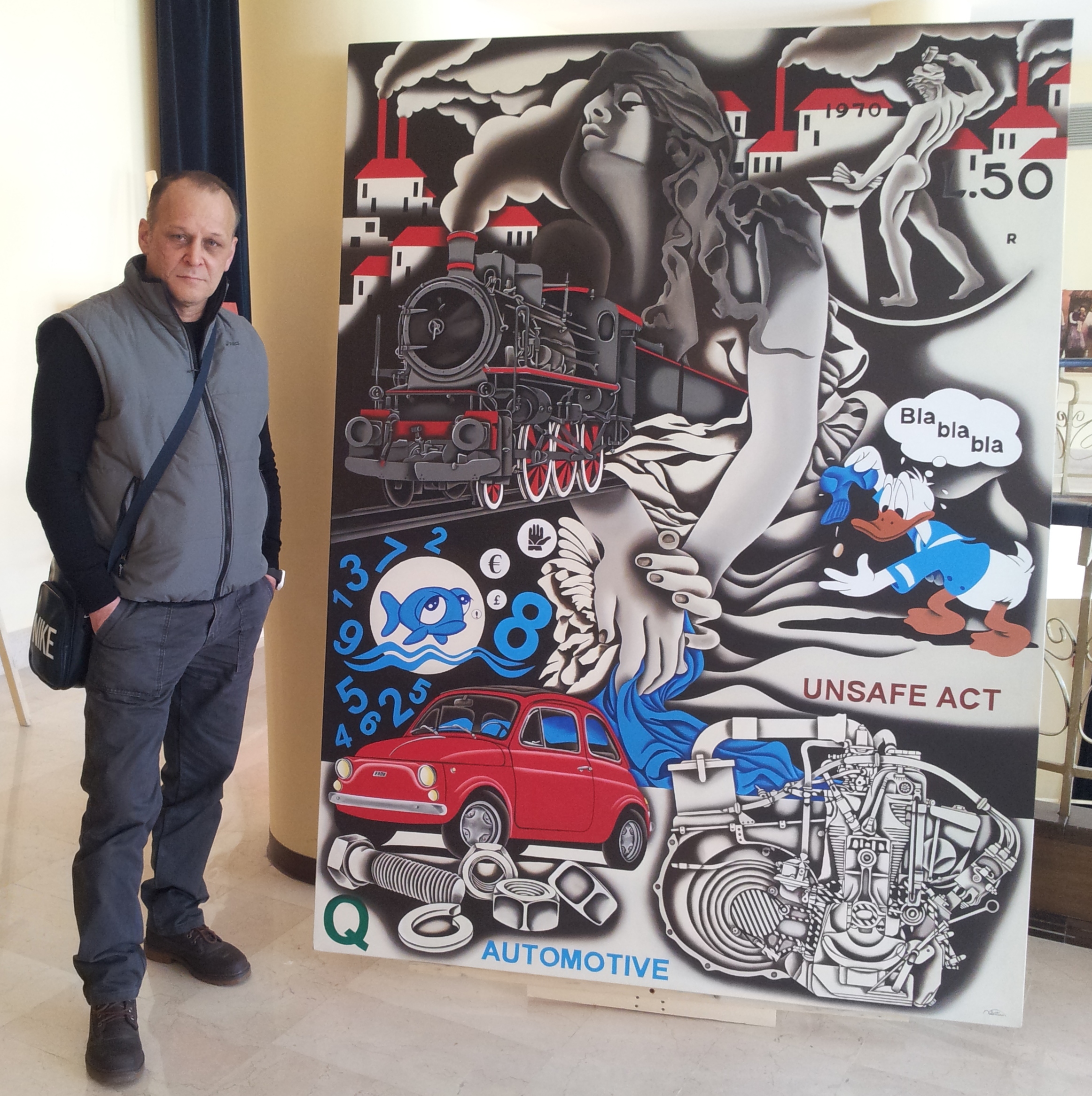 Automotive Bla bla bla Pittura, Politico/Sociale, Fantasia / Visionario, Olio, 140x190x8cm Tela Olio operaio bla bla bla automotive Inserita 11 anni fa 22 Mi piace Non piace più 4 Commenti 625 Visite Condividi Facebook Twitter Google + Piace a 21 Laura Luigina Andreuzzi Artista - Roma Cat Fotografo - Strasbourg, Francia Cinzia Corvo (Nic) Artista - Perugia alexandra maier Artista - Kapfenberg, Austria Flora Unicum Artista - Reggio di Calabria Angela Cacciotti Artista - Latina Giacù Artista - Catania SDavleti Artista - Almaty, Kazakhstan Trayana Panayotova Artista - Yambol, Bulgaria B. R. (Interforma) Live Media artist, Organizzatore - Litzmannstadt, Poland Duta Vasilica Artista - Vicenza Schirà * Artista - Lugano, Svizzera Gaetano Valentino Artista - Caserta jeanluc art & style Artista - Venezia Rudolf Lichtenegger Artista - Kapfenberg, Austria ENZO PIROZZI Artista - Pistoia Vedi tutti Commenti 4 10 anni fa Gaetano Valentino Artista Grazie jeanluc . . . . bellissima . . . . . a cui ho dedicato tante ore 10 anni fa jeanluc art & style Artista Bellissima opera! 11 anni fa Gaetano Valentino Artista Grazie Teresa . . . . . ho grande considerazione della tua opinione 11 anni fa Teresa Palombini Artista Opera complessa e colma di simboli. COMPLIMENTI! Inserisci commento E' necessario effettuare il login o iscriversi per inserire il commento Login