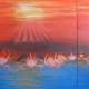 The title of this work "Skûtsjesilen" is the Frisian word for sailing with these dutch original flat bottom vessels. In the Netherlands on the Frisian lakes there is every year a big sailing event for those vintage boats. The weather portrayed here with its dark cloud formation could be considered typical for the region, as I remember it from sailing there on my father's boat, and for the ambiance of the event, while it adds to the aura of nostalgia of the painting.