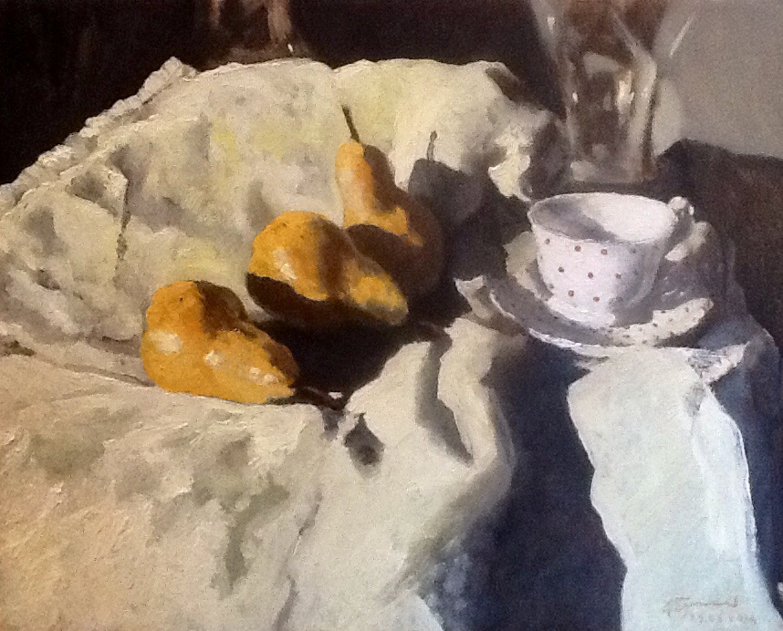 "Still Life with old Czecoslovak cup" Pittura, Natura, Natura morta, Interni, Olio, 50x40x1cm Luce Tela Olio Bianco natura morta ambiente tazza ombre pere Natura morta con tazza cecoslovacca comprata in un mercatino. Inserita 11 anni fa 1 Mi piace Non piace più 0 Commenti 252 Visite Condividi Facebook Twitter Google + Piace a 1 nicole voicu Artista - Venezia Commenti 0 Inserisci commento E' necessario effettuare il login o iscriversi per inserire il commento Login