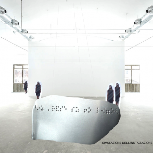 L'installazione GADGET e' costituita da una lastra in resina su cui è stato stampato "il retro", ovvero la parte concava, del verso di Giovanni in alfabeto braille. La parte controbraille e' quella frontale, mentre l'altra rimane completamente piatta. La lastra viene introdotta nell'ambiente espositivo tramite fili invisibili, ad altezza uomo, in modo da essere osservata e toccata in tutti i lati.