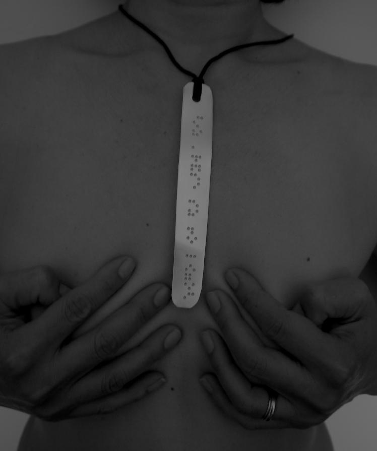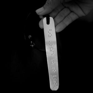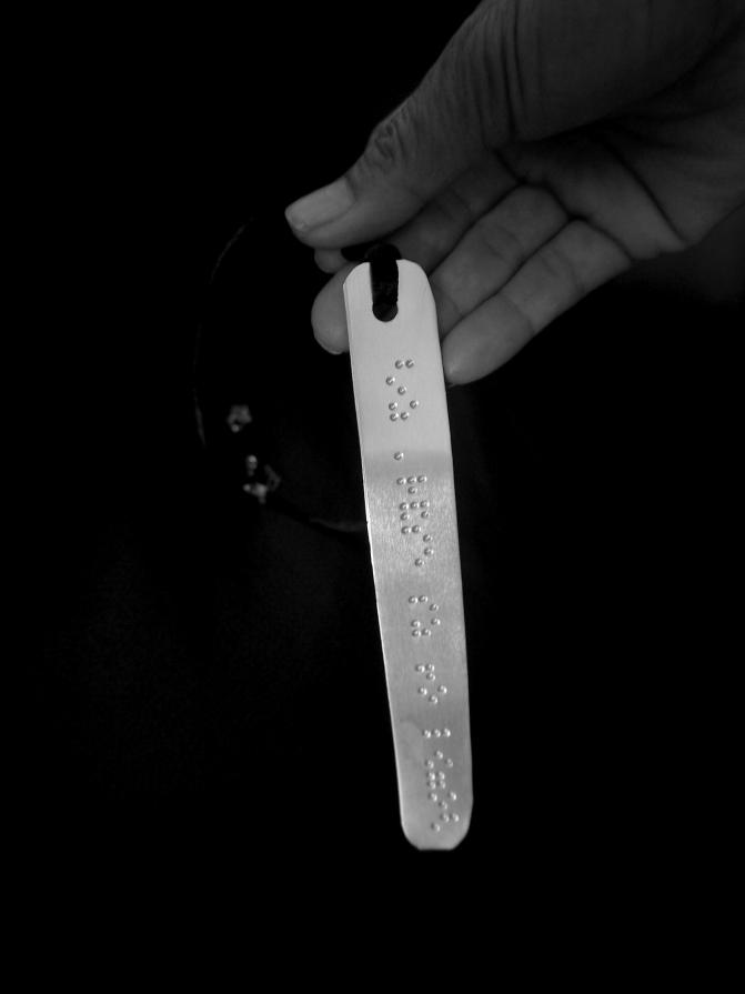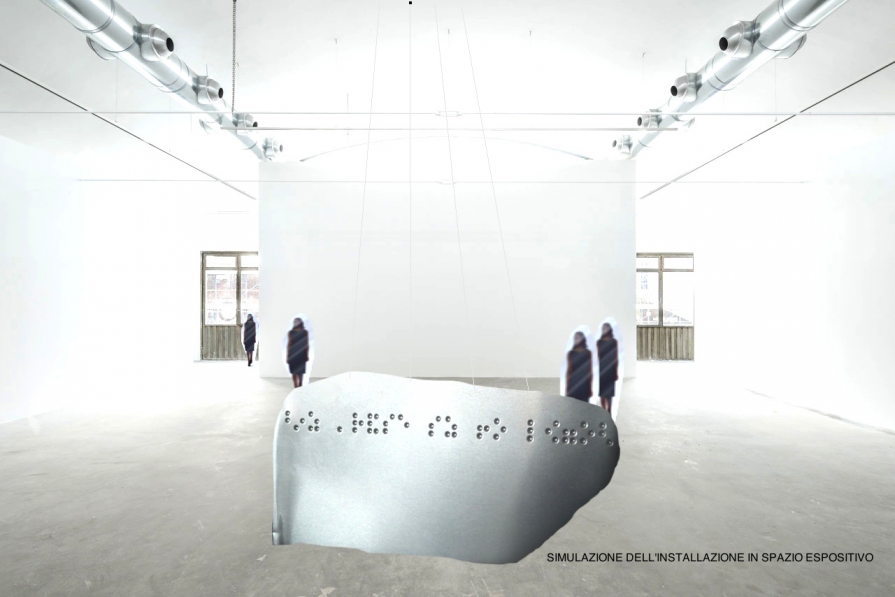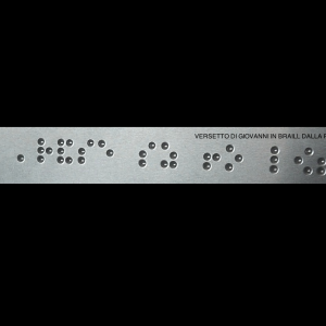 Non solo. Ho scelto di utilizzare il versetto originale in greco antico tradotto in un codice tattile: il linguaggio braille. E della trascrizione braille ho usato il "negativo", la parte concava, quella che non può essere letta. In questo modo si è proceduto ad un azzeramento del senso codificato, non solo in termini concettuali ma anche in termini fisici, tattili, concreti.