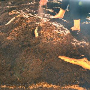 Sperimento una serie di azioni artistiche a contatto con la terra. E' una sorta di ritorno all'origine, a un ventre primordiale, un grembo precedente a quello materno. Il bisogno di sentirsi una cosa sola con la terra, quasi il suo respiro, va di pari passo al bisogno di un'ulteriore protezione sulla mia stessa pelle.