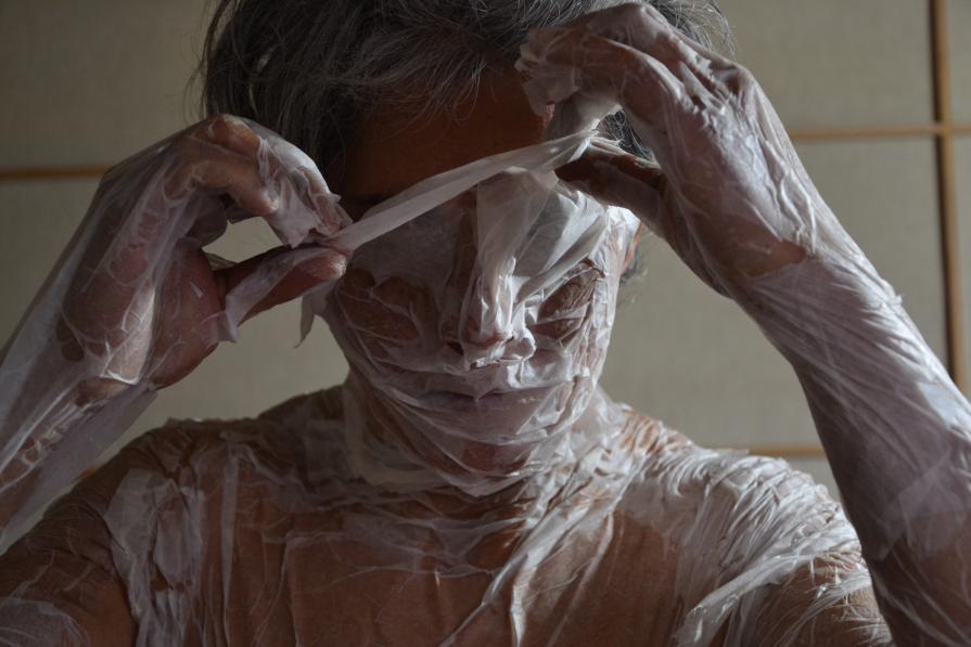 La pelle coperta e trasformata dalla carta è diventata immagine di una vecchia pelle, pelle di una vecchia madre. Mia madre...me stessa.