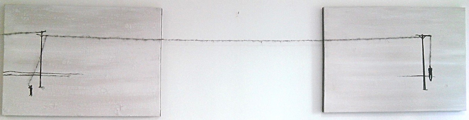 Clay on Canvas with Guache and Mohair (measurement width is for total installation of work, each canvas is 70cm wide)