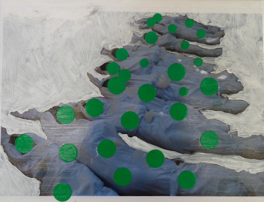 An ongoing series of small paintings(24X30cm),mixed media on canvas.A reflection of the era we live in. It has its origine in collecting images and texts from newssites like Reuters.
