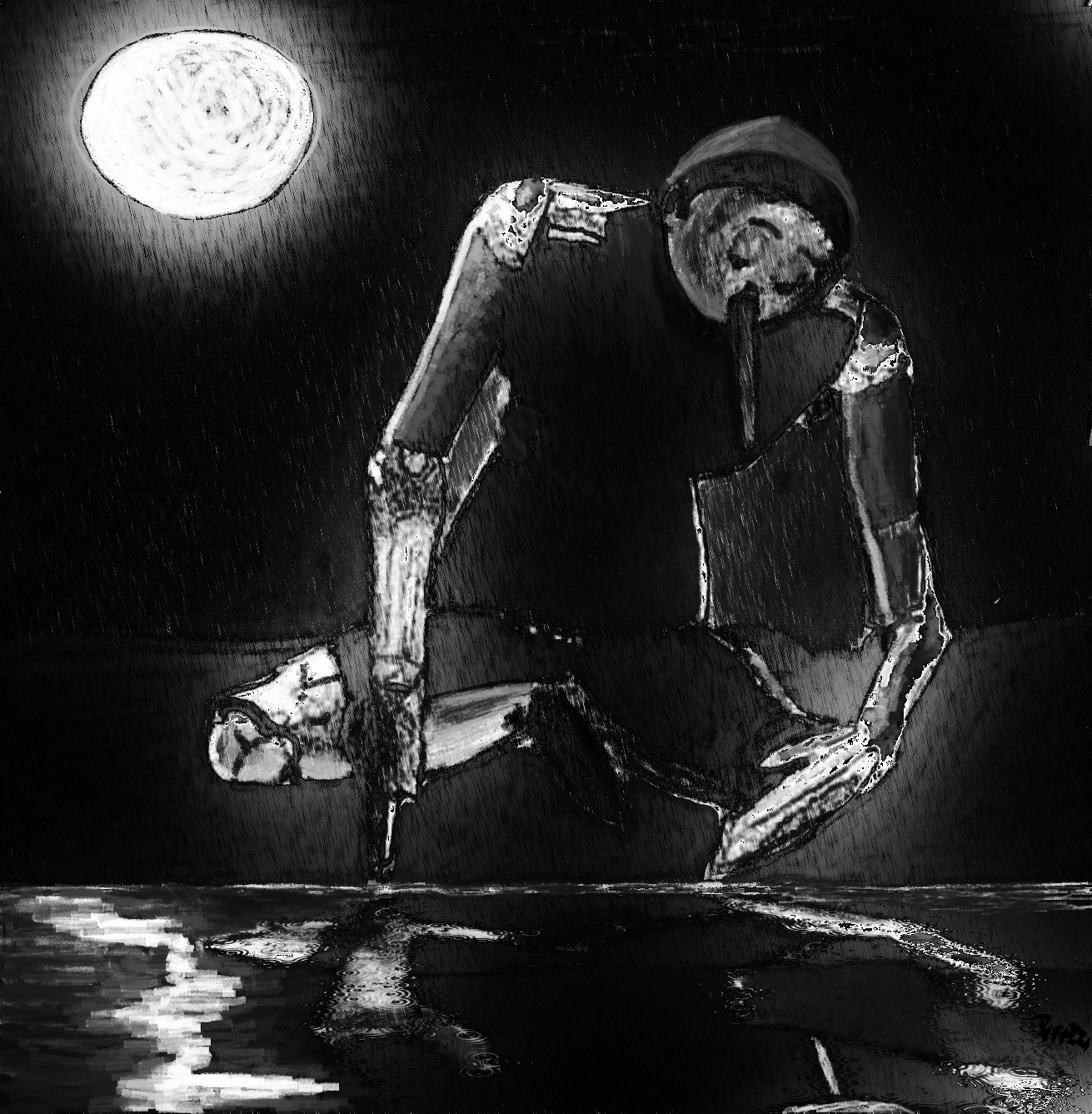 la tristezza in Pinocchio mi evoca quella dei clown, continuamente utilizzati in pittura proprio per ben rappresentare questo stato d'animo. L'accostamento di un personaggio delle favole da sempre visto come l'allegria e la spensieratezza accostato ad uno stato d'animo buio, è sorprendentemente riuscito!