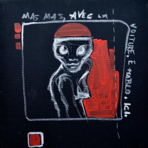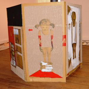 Amalgamandosi con segni, scritte, disegni pitture ad acrilico, esso diventa parte integrante della narrazione, sorta di fragile Ara Pacis personale.