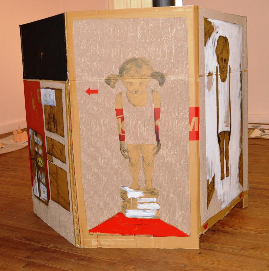 L’altro corpo è composto da un cartone autoportante e chiuso su se stesso sino a formare un solido irregolare senza basi.