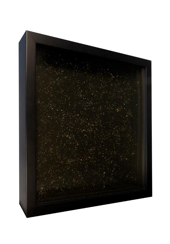 L'oro ricavato da una fede nuziale è ridotto in polvere e soffiato su quattro lastre in vetro. Le quattro lastre sono poi state chiuse in una teca in legno nera. Un omaggio alla vita, alla morte, al ricordo che rimane vivo ed effimero come un soffio di polvere nell'Universo.
