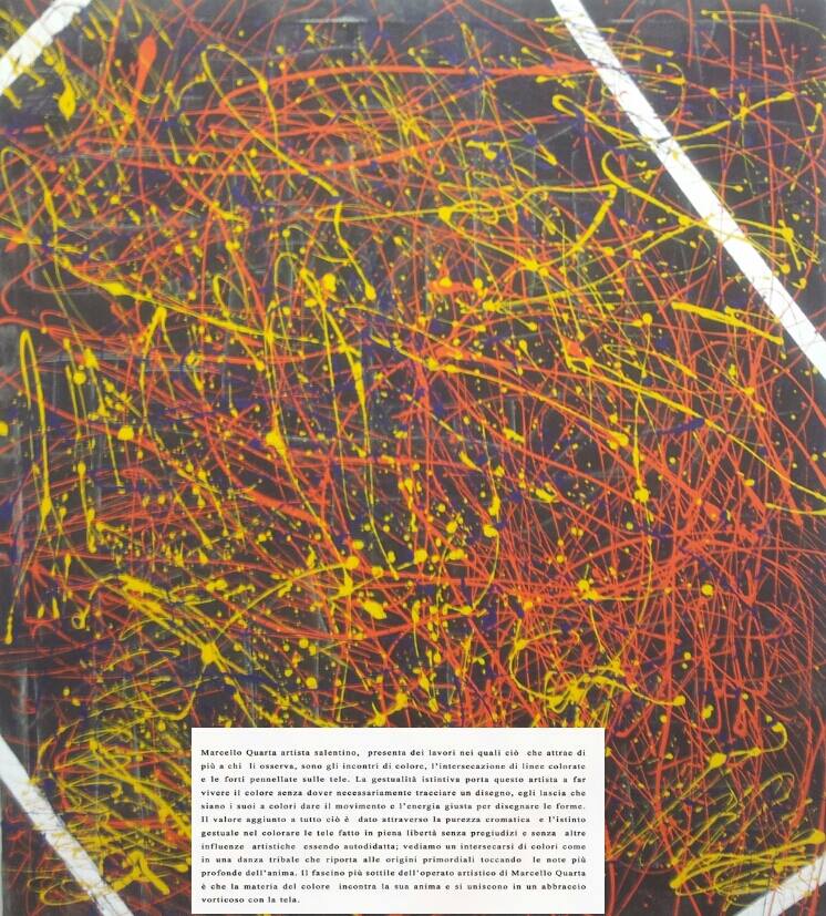N°2 Pittura, Idee, Astratto informale, Vernici industriali / Smalti, 50x50x5cm Tela Vernici industriali / Smalti marcello lecce quarta marcello quarta artisti lecce lecce2019 marcello art quarta capitale della cultura lecce porta san biagio museo faggi Inserita 11 anni fa 1 Mi piace Non piace più 0 Commenti 132 Visite Condividi Facebook Twitter Google + Piace a 1 Tanya Bartolini Premium Artista - Milano Commenti 0 Inserisci commento E' necessario effettuare il login o iscriversi per inserire il commento Login