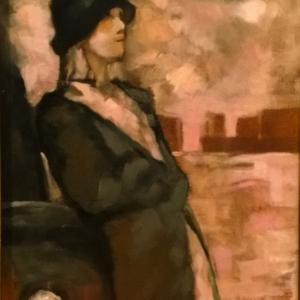 Quest'opera di piccolissime dimensioni è stata realizzata inizialmente su richiesta da parte di un curatore per la realizzazione di una mostra. L'opera ha rappresentato poi nel tempo, una scena anni'20 nella quale una donna è appoggiata alla sua auto, in attesa di un evento...ma quale? non ci è dato saperlo, rimarrà un segreto. Il suo segreto...