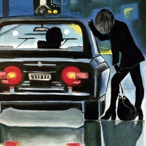 Il mestiere più antico del mondo visto in versione d'alto bordo con l'elegante donna in boa di struzzo seduta al tavolo. In secondo piano vediamo invece lo stesso lavoro ma svolto sul marciapiede con la ragazza abbordata dal cliente in macchina. In miseria e in ricchezza, la tristezza resta sempre dipinta sul volto di queste donne.