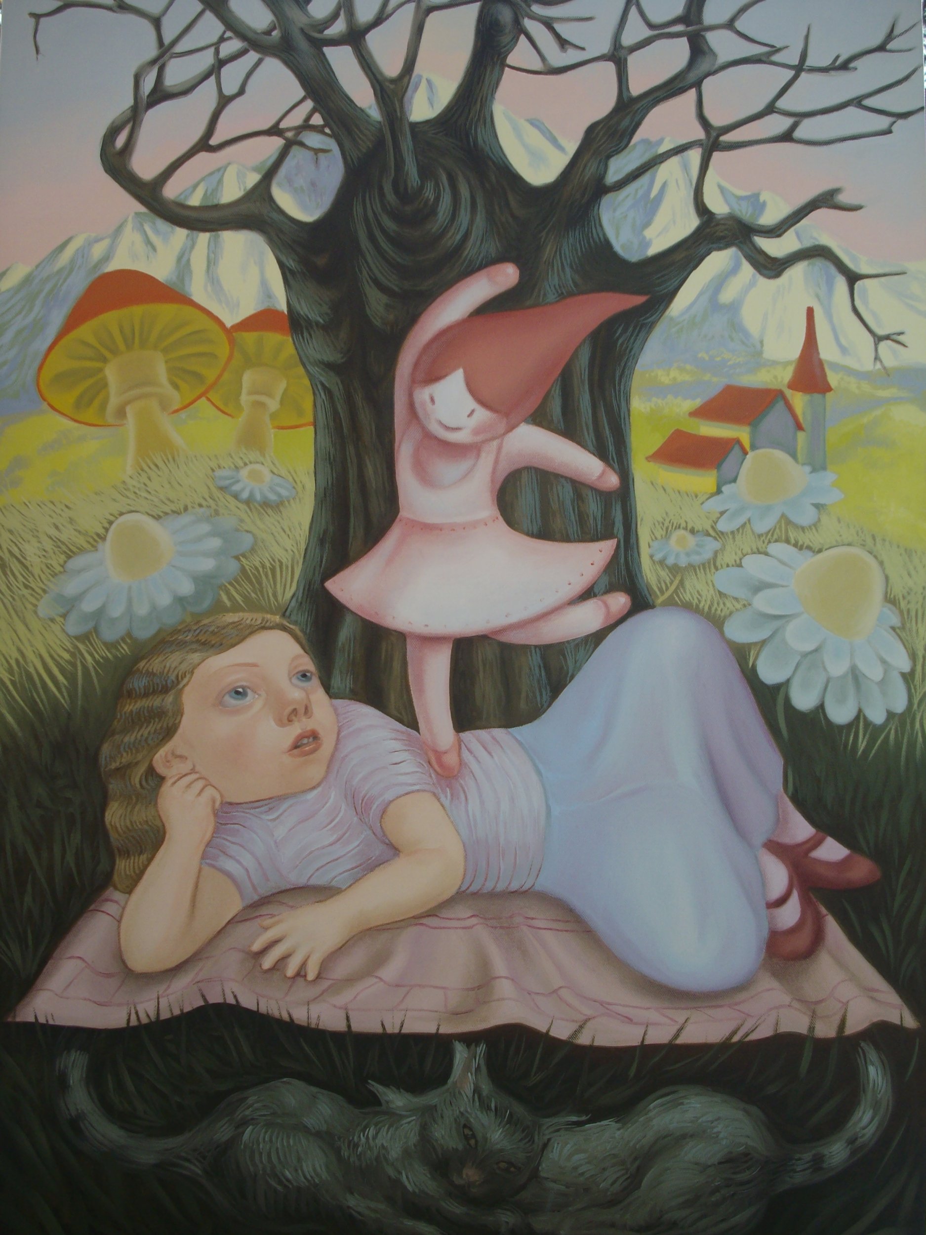 l'opera raffigura le fantasticherie di una bambina: una piccola bambola le danza sul ventre...il suo sorriso beffardo le ricorda che tutto è solo un sogno.
