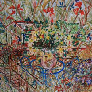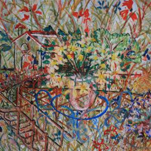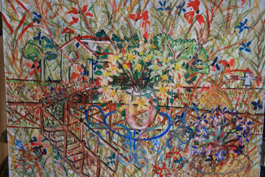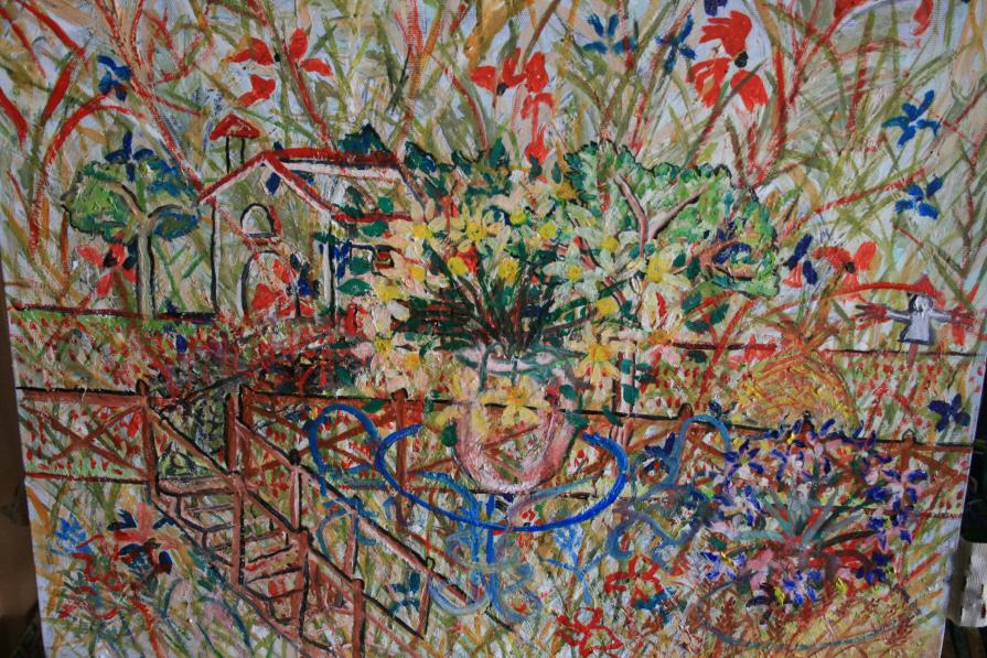 La casa, il tavolo, lo steccato ed il resto, diventano dettagli, fili forme, espressionI di unun'esplosione di colori.