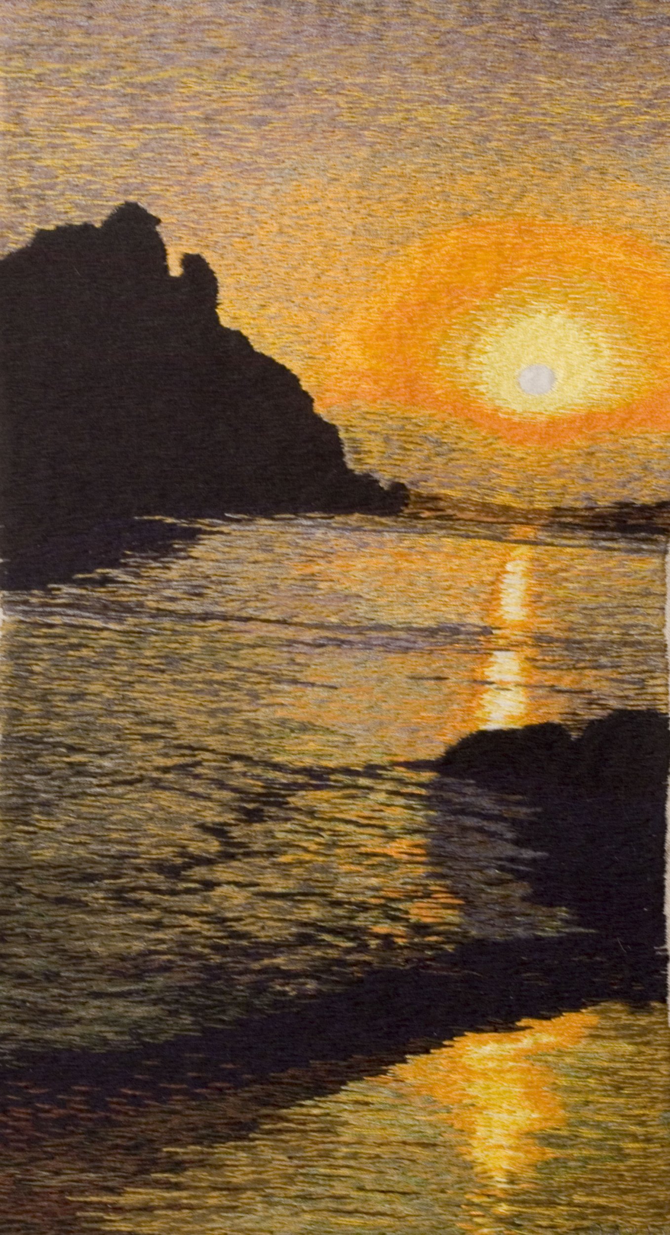 Questa opera è stata ricamata su tela a punto liscio con i fili di lana e mulinè.