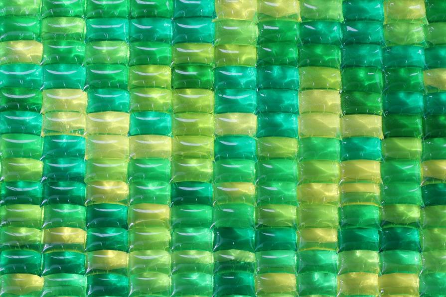 TEX28 is the genetic sequence for the ability to see a broader range of color in the yellow spectrum. Humans possess three cone cells that allow us to see color: Red, Green and Blue. Theoretically some women have an extra cone cell - “Yellow” and the ability to see additional shades in the yellow/green spectrum, this ability is called Tetrachromacy. It is impossible for people with three cone color vision to see these additional shades and it is equally impossible for women with this ability to describe and share what they see. This sculpture is a map of the specific gene sequence using the color spectrum of green to yellow that the gene is coded for. There are four colors in this palette that refer to the four amino acids that make the code: A,C,G,T. I have assigned a shade value to each letter and then translated the code into a grid. By using transparent dyes suspended in water the piece covers a much larger range of variation as light passes through the bags. The dyes are food safe, non toxic pigments that can be poured into the water table or ocean without causing harm to plants or animals.