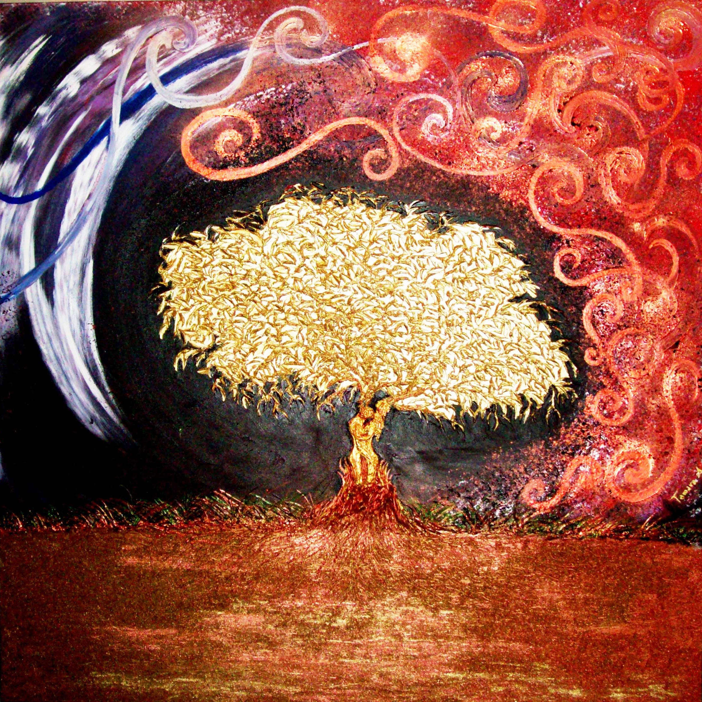 E' la rappresentazione di un abbraccio tra un uomo e una donna che si fondono insieme al cielo e alla terra formando un albero d'oro che simboleggia la forza della famiglia.