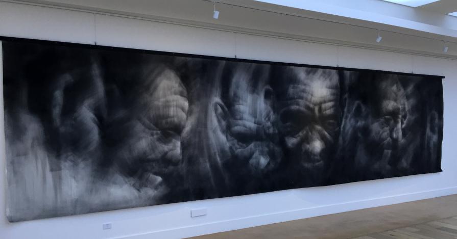 This very large scroll drawing explores the psychological and spiritual experience of the self reflected in and through the life of the other – in this case, reflecting upon multi-layered cross-cultural narrative, in which case, human experience transcends racial, cultural and social boundaries in its innate transformative potential.