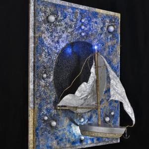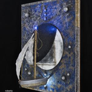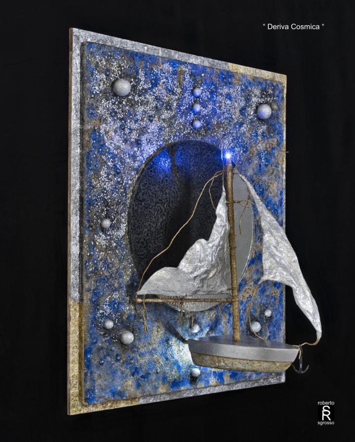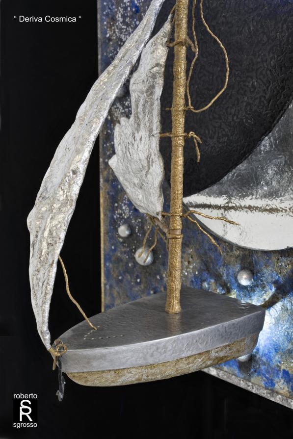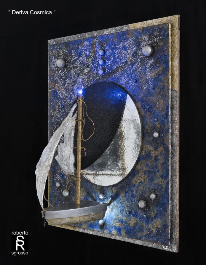 " Deriva cosmica " Scultura, Astratto geometrico, 54x65x2cm Galleggiante nel vuoto, alla deriva, con le sue duttili vele gonfie di luce, trascinata da forze gravitazionali, una barca viaggia lenta e leggera nel silenzio del buio cosmico. https://www.facebook.com/Roberto-Sgrosso-1095078547192824/?ref=hl Inserita 9 anni fa 7 Mi piace Non piace più 0 Commenti 204 Visite Condividi Facebook Twitter Google + Piace a 7 Forma Artista - Belgrade, Serbia Alina La Papira Artista - Madrid, Spagna Katerina Belkina Artista - Werder, Germania Andrea La Volpe Artista - Ancona Tanya Bartolini Premium Artista - Milano Lino Bianco Artista - Modena EMMANUELA Artista - Biella Commenti 0 Inserisci commento E' necessario effettuare il login o iscriversi per inserire il commento Login