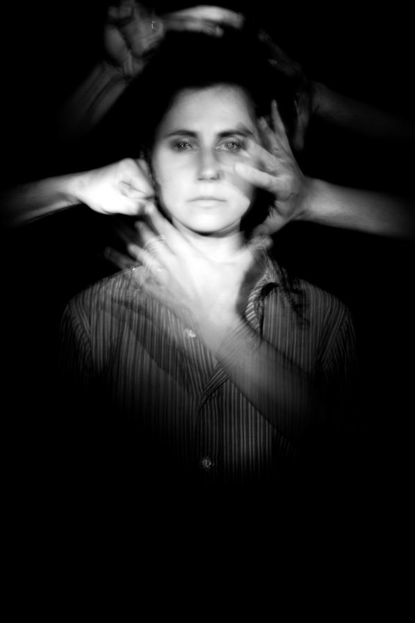 La tecnica del light painting mi ha permesso di utilizzare esposizioni lunghe anche 3 minuti, in questo lasso di tempo i due performers potevano spostarsi al buio per assumere nuove posizioni per poi fissarle con l'accensione e la pittura di una lampadina, permettendomi di costruire l'azione fisica e interiore durante la sola fase di scatto."