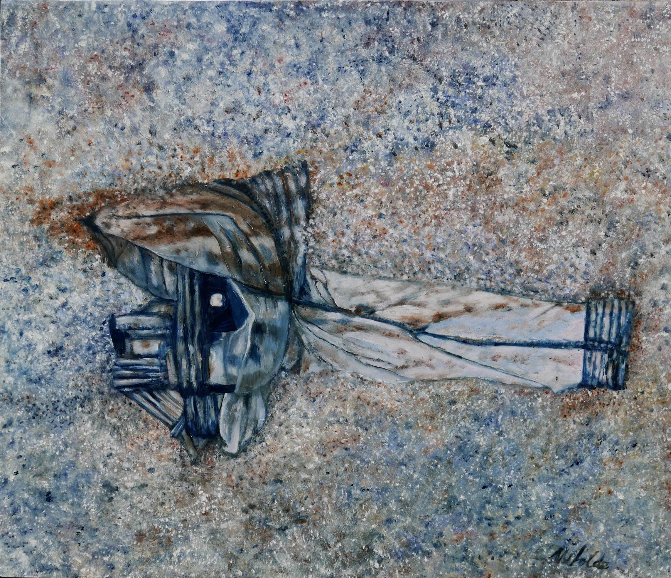 The series of paintings "Ropas abandonadas" has started when I was walking through Spain and is sinds expanding. They are now also from walks in Italy, England, Hawaii and Australia. These are lost clothes weathered and have become one with their environment.