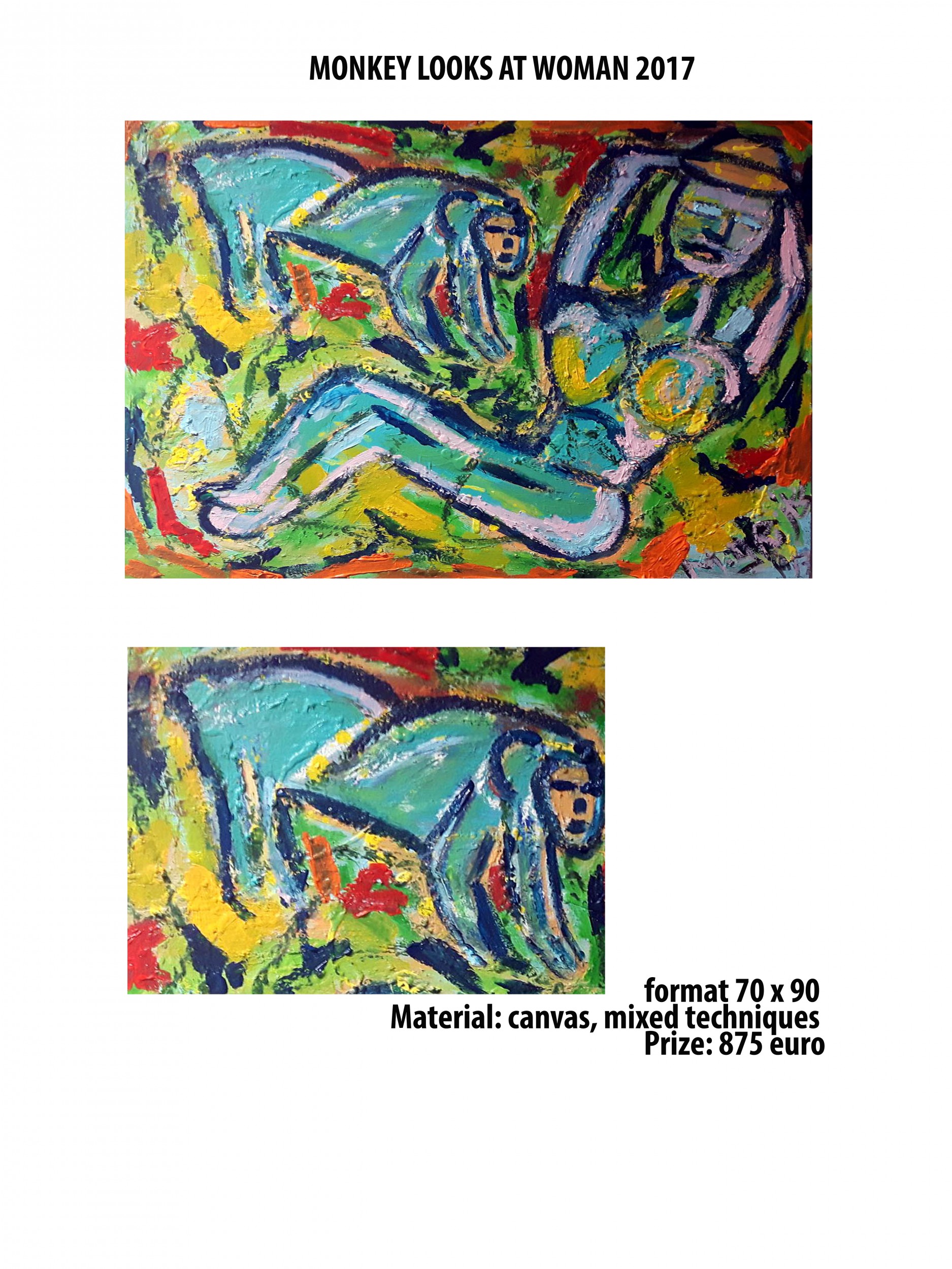 Monkey looks at woman 2017 Pittura, Figura umana, Animale, Simbolo / Lettera, Tecnica mista, 70x90x2cm http://artistmg-rijks.nl/artwork-2017 who looks at who? who is the animal? Inserita 8 anni fa 2 Mi piace Non piace più 0 Commenti 181 Visite Condividi Facebook Twitter Google + Piace a 2 de Valois Artista - Aix-en-Provence, Francia Tanya Bartolini Premium Artista - Milano Commenti 0 Inserisci commento E' necessario effettuare il login o iscriversi per inserire il commento Login