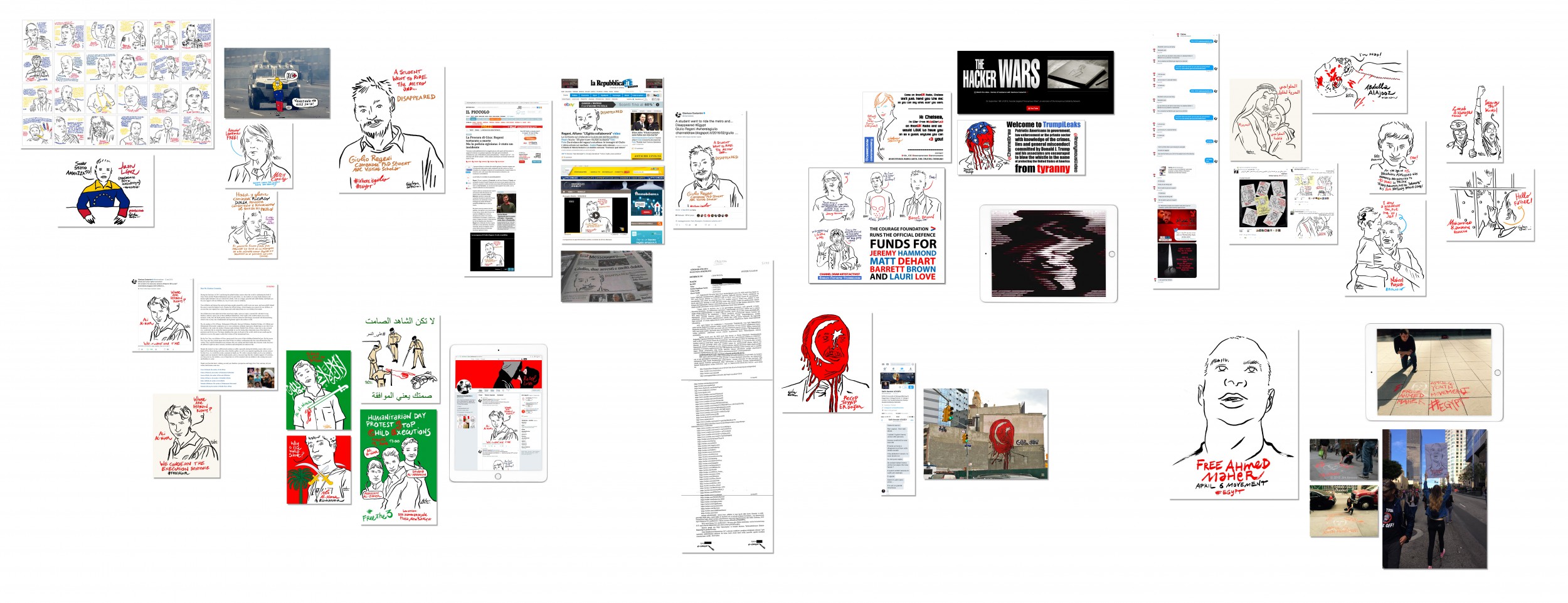 I disegni realizzati per chiedere la scarcerazione dei detenuti politici egiziani nel 2015 sono diventati un'azione comunicativa negli Stati Uniti, a New York con l’attore Holt McCallany e l’artista Siobban Muldoon documentata da un video: https://www.youtube.com/watch?v=-79eeSSJCT4