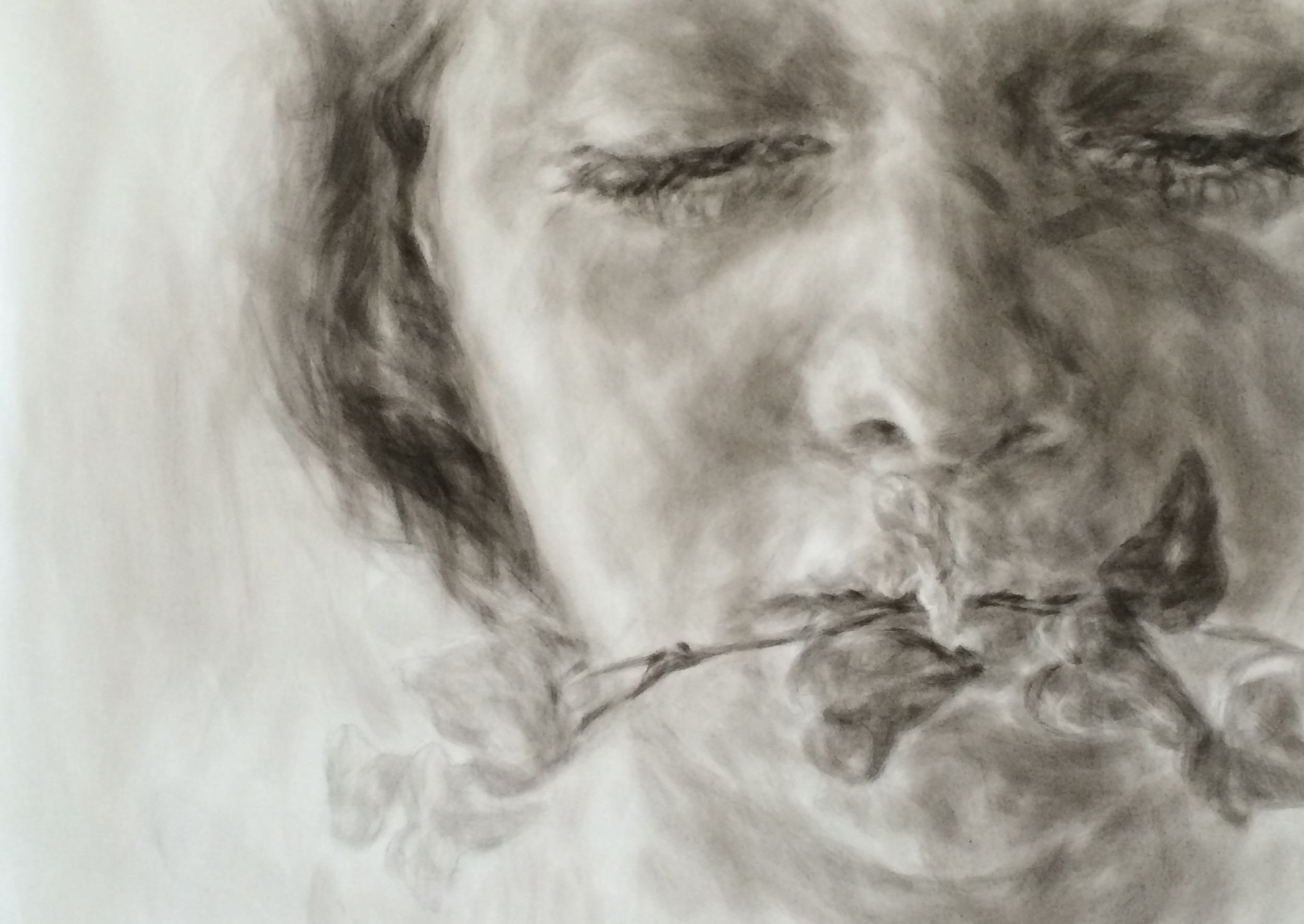 Lavoro in bianco e nero perchè amo il disegno, procedo per velature lavorando con i colori acrilici