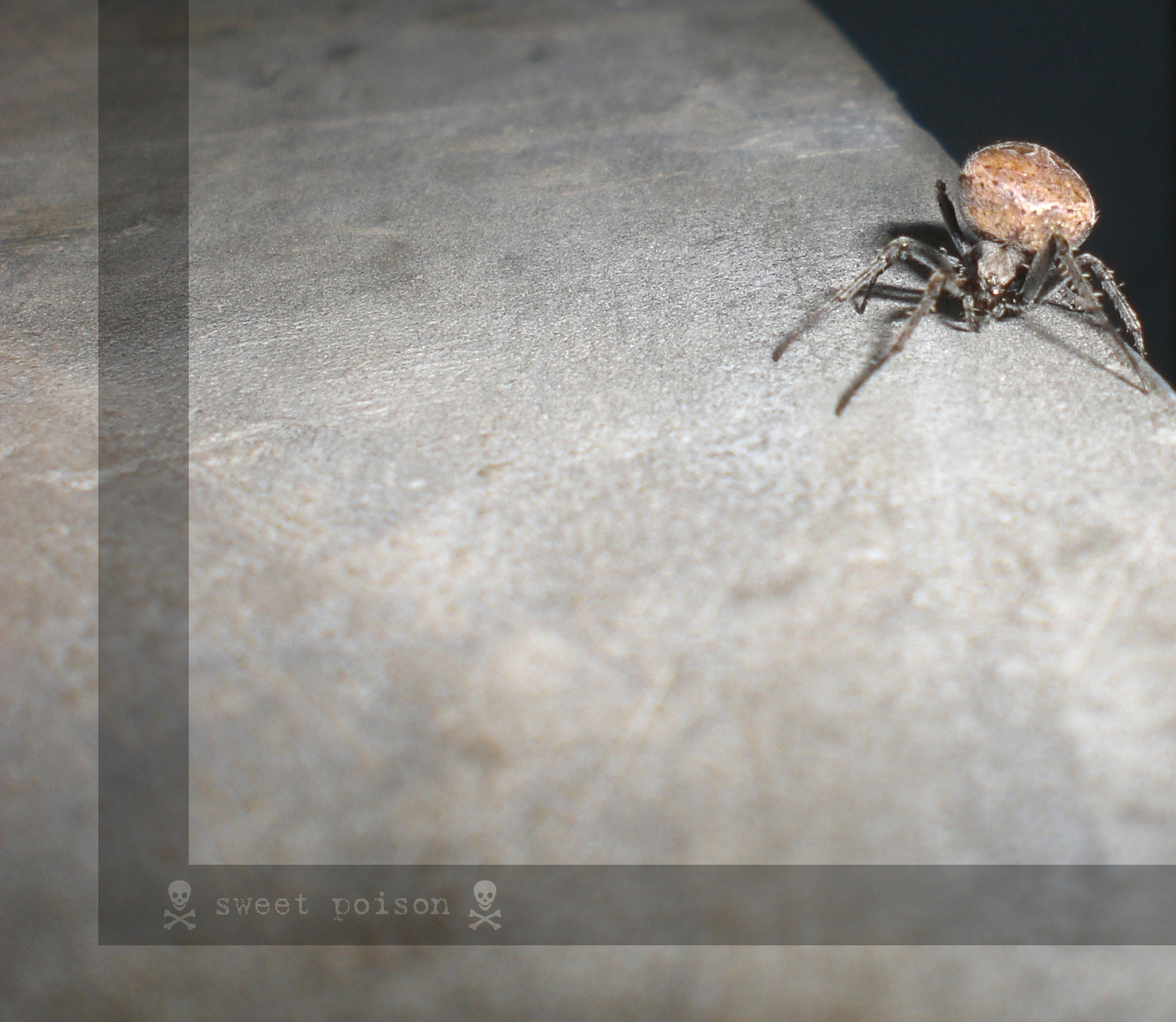 Just used Exilim EX-Z75 pocket camera. No computer editing - only crop and line. Position the spider on the wall not floor, so shot with vertically (up) - without tripod. Looks scary, but actually the size of the spider not bigger than a fly :)