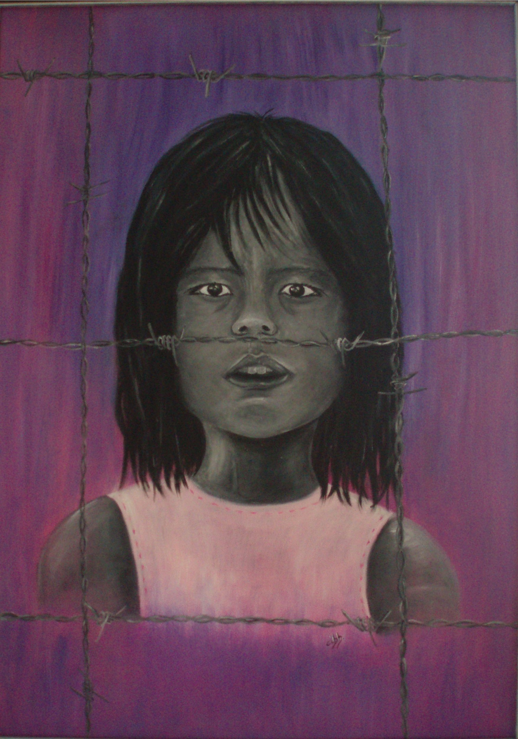lo sguardo intenso...occhi che chiedono disperatamente....un umanità sofferente che ha bisogno di aiuto....un opera intensa..carica di grande umanità...un opera di denuncia...COMPLIMENTI...MOLTO BELLA.....SEI MOLTO BRAVA.