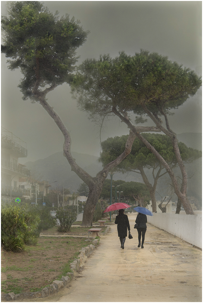 A Mondello, dove vivo, il mare d’inverno, con le sue atmosfere rarefatte, i suoi insoliti colori di cielo e mare, i suoi silenzi interrotti solo dallo scrosciare della pioggia, assume per me un fascino unico... e non basta la pioggia per rinunciare ad una passeggiata sul lungomare.
