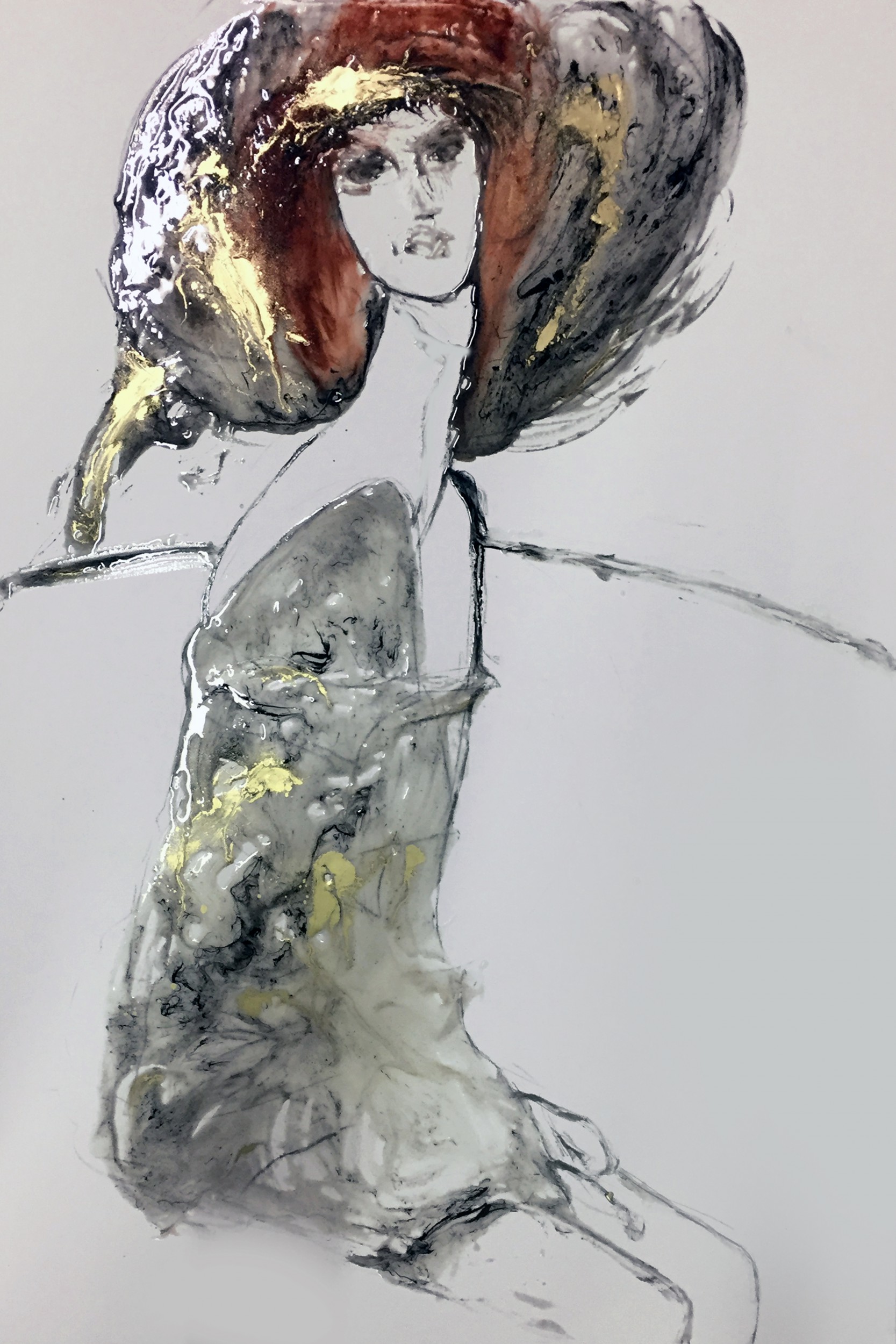 Il tratto libero si unisce alla resina e crea affascinati effetti cromatici e materici: nascono icone femminili con corpi evanescenti e fluidi, donne che racchiudono un’aurea magnetica. Pennellate nitide e decise, colori sfocati a volte surreali, soggetti realistici ma mai definiti. Come afferma l’artista : “La mia ricerca è far combaciare l’immagine interiore che vedo confusa e in lontananza, ma che conosco emotivamente perfettamente, all’opera che creo di volta in volta. E’ un’immagine nascosta, dentro di me, indefinita, trasparente, forte e fragile insieme”.